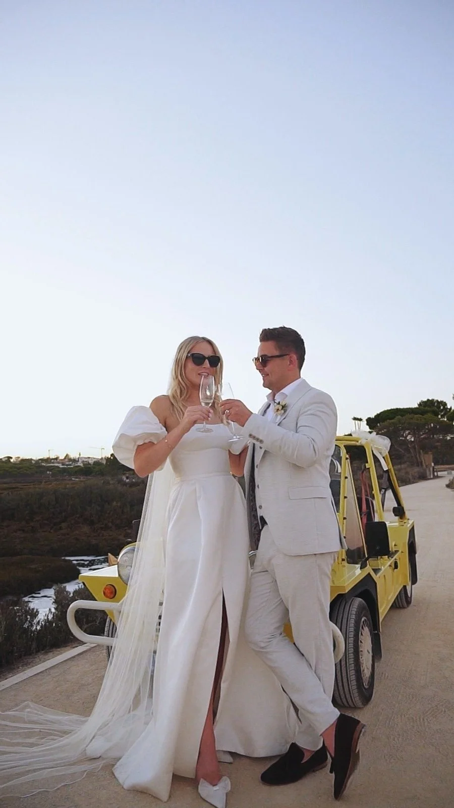 Klara said, 'We made it!' as she and Darren exchanged vows at the Casa do Lago, a beloved family vacation retreat. The couple, known for their contagious laughter and playful antics, delighted all their guests with impromptu dances and hilarious moments during the ceremony. With the Algarve sun shining down on them, they knew this was just the beginning of a life filled with adventures and fun together."